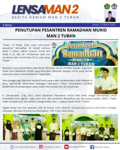 Dengan semangat gotong royong, MAN 2 Tuban berhasil menanam 100 pohon dari jam 7 pagi sampai jam 10. Kegiatan ini tidak hanya memberikan manfaat bagi lingkungan sekitar, namun juga memiliki dampak positif yang luas.Penanaman pohon ini diharapkan dapat meningkatkan kualitas udara, mencegah erosi, menjadi habitat bagi satwa.
