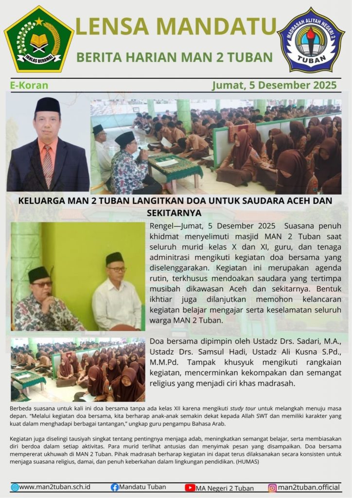 m@n2tuban HumasMANDATU December 5, 2025 0 HumasMANDATU See author's posts Post Views: 4 Continue Reading Previous MAN 2 Tuban Gelar Diklat Jurnalistik Bagi Siswa Bekerja sama dengan PWI More Stories m@n2tuban MAN 2 Tuban Gelar Diklat Jurnalistik Bagi Siswa Bekerja sama dengan PWI HumasMANDATU December 4, 2025 0 m@n2tuban Prestasi dalam Kejuaraan Atletik Bupati Cup Open 2025 HumasMANDATU December 1, 2025 0 m@n2tuban Prestasi Guru MAN 2 Tuban HumasMANDATU December 1, 2025 0 Leave a Reply Cancel replyYour email address will not be published. Required fields are marked *Comment * Name * Email * Website Save my name, email, and website in this browser for the next time I comment. Δ