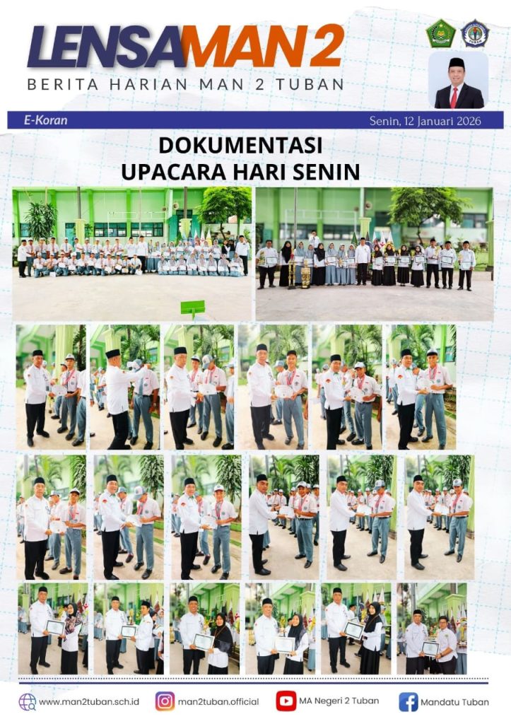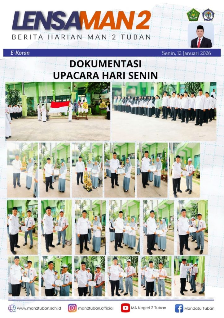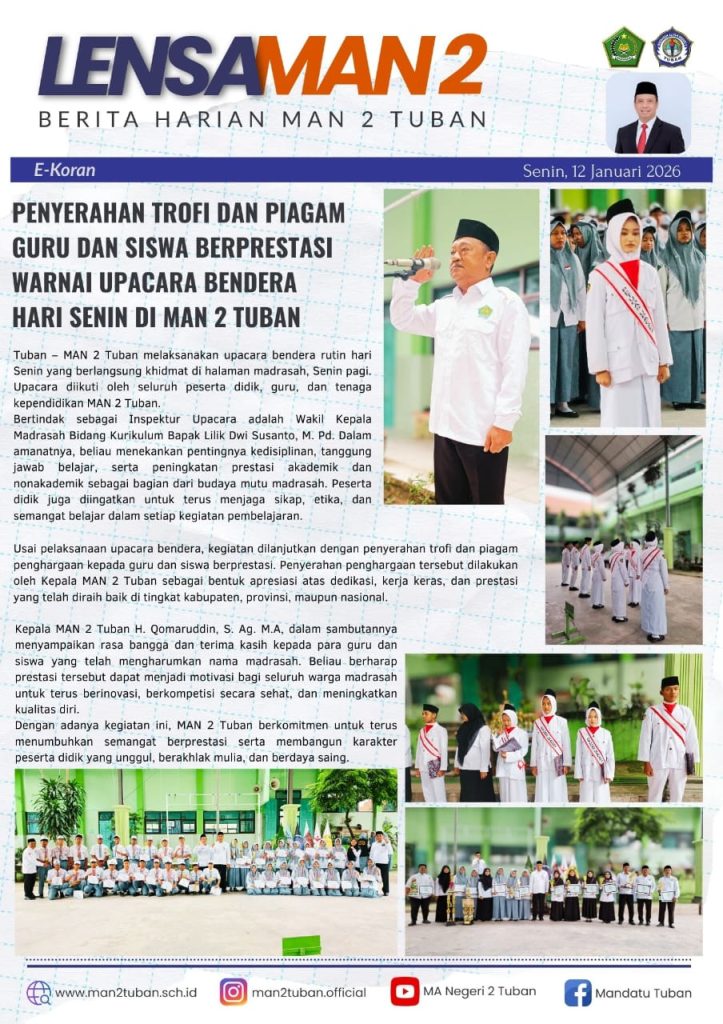 m@n2tuban Penyerahan Trofi dan Piagam Guru dan Siswa Berprestasi Warnai Upacara Bendera Hari Senin di MAN 2 Tuban HumasMANDATU January 12, 2026 0 HumasMANDATU See author's posts Post Views: 15 Continue Reading Previous Sosialisasi Kampus UNAIR More Stories m@n2tuban Sosialisasi Kampus UNAIR HumasMANDATU January 9, 2026 0 m@n2tuban Doa Berkumandang dalam Masjid MAN 2 Tuban HumasMANDATU January 9, 2026 0 m@n2tuban Keluarga Besar MAN 2 Tuban, Ikut Memeriahkan Jalan Sehat dalam Rangka HAB Kemenag HumasMANDATU January 7, 2026 0 Leave a Reply Cancel replyYour email address will not be published. Required fields are marked *Comment * Name * Email * Website Save my name, email, and website in this browser for the next time I comment. Δ