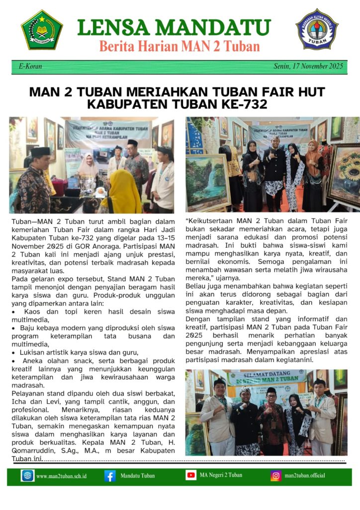 Siswa MAN 2 Tuban Raih Prestasi Nasional dalam Lomba Poster dan Video Cinematik